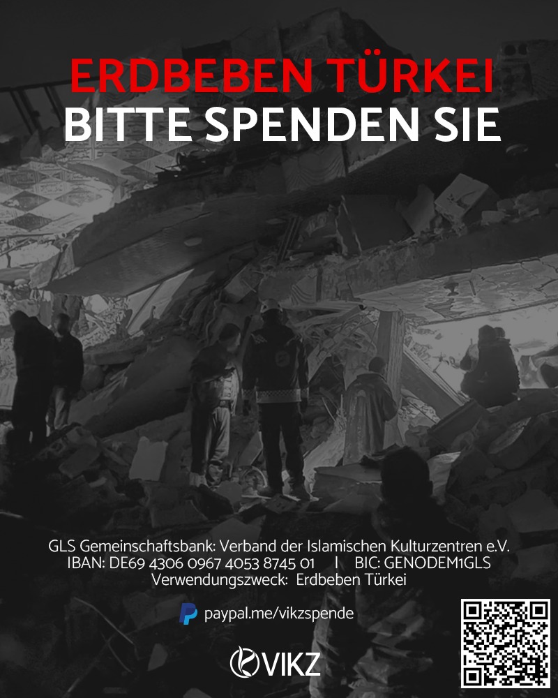 Der Landesverband der Islamischen Kulturzentren Nordrhein-Westfalen e.V. ist tief erschüttert über die verheerenden Auswirkungen des Erdbebens im Südosten der Türkei und seinem angrenzenden Nachbarland Syrien. Die Zahl der Todesopfer und der Verletzten steigt von Stunde zur Stunde immer weiter. Der VIKZ wünscht allen Todesopfern Allahs Segen, den Hinterbliebenen sein tiefstes Mitgefühl und den Verletzten schnelle Genesung. Wir bangen mit den Verschütteten.